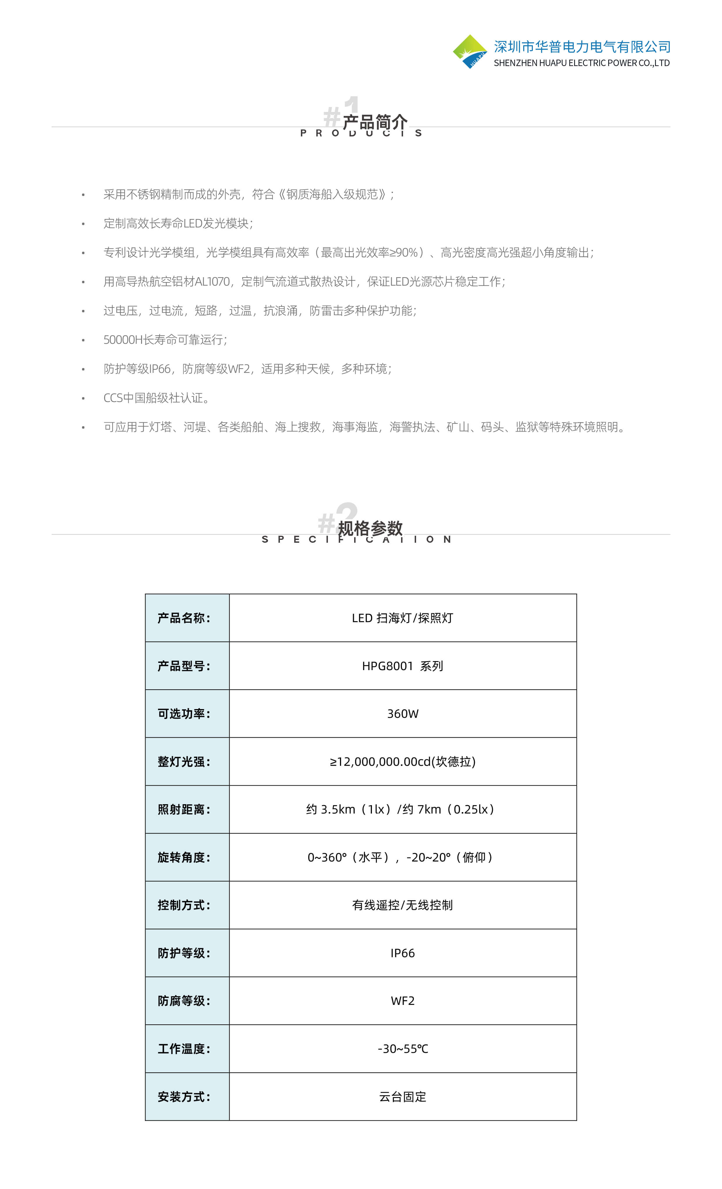 可应用于灯塔、河堤、各类船舶、海上搜救,海事海监,海警执法、矿山、码头、监狱等特殊环境照明。